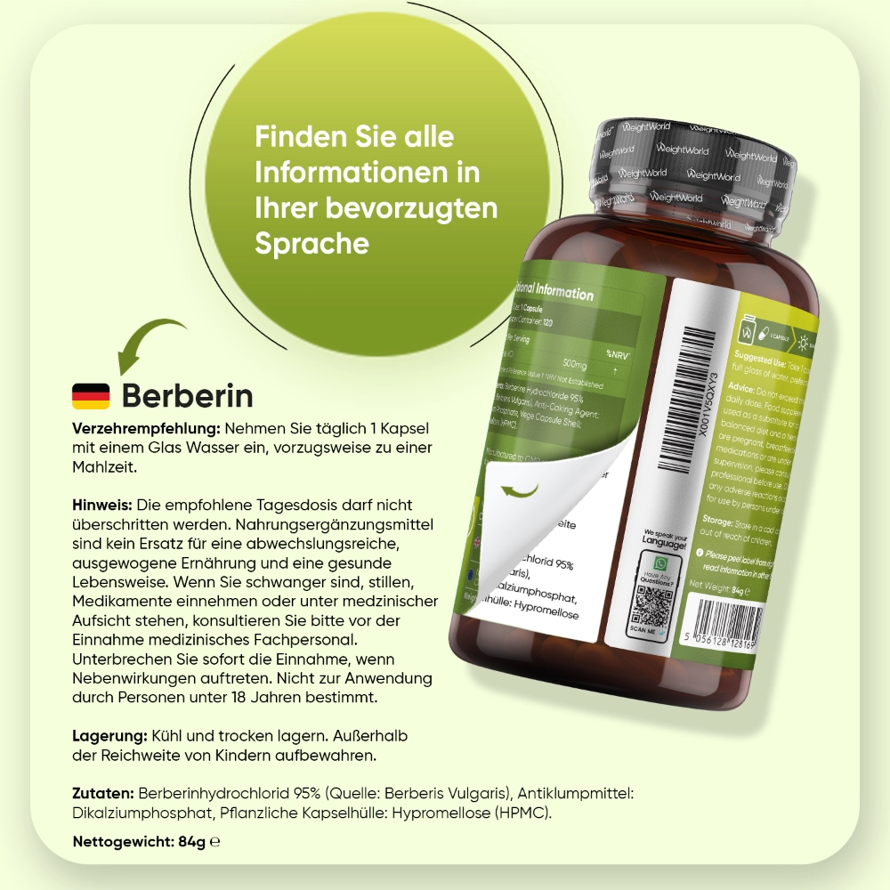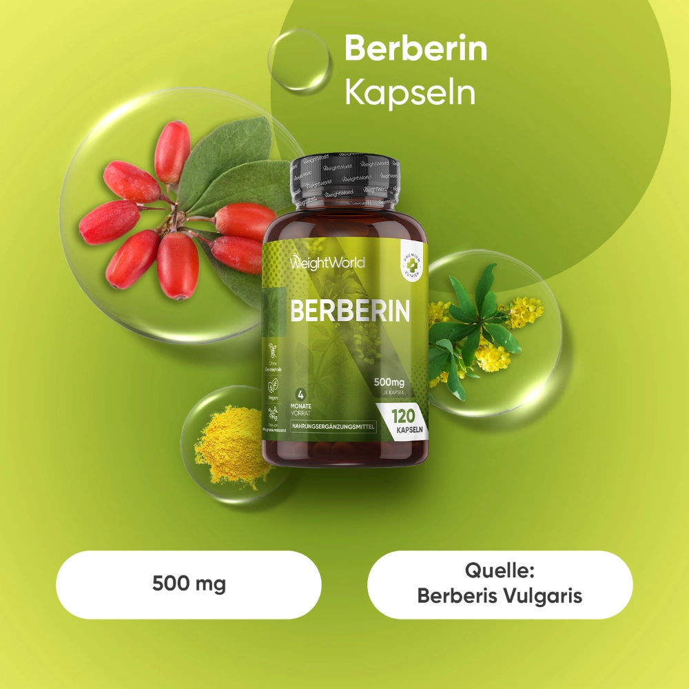 - Jede Berberin 500mg Kapsel enthält 500 mg Berberin, ideal für spürbare gesundheitliche Vorteile