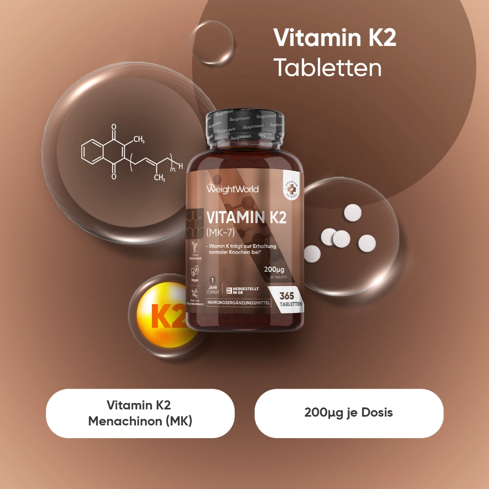 365 hochdosierte Tabletten mit 200 µg | Unterstützung der Knochen & Blutgerinnung