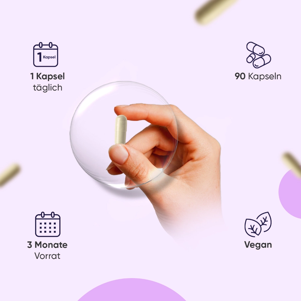 - 90 Kapseln – 3 Monate Vorrat, ideal für die tägliche Einnahme.