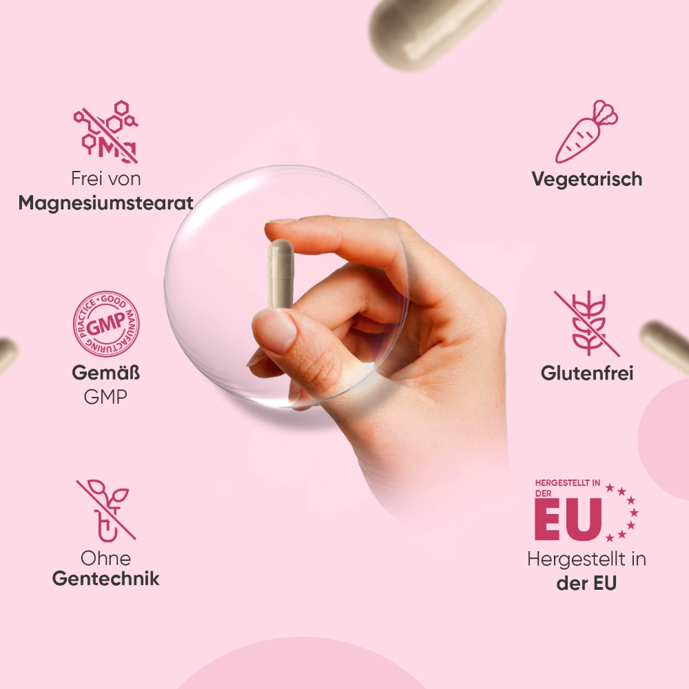 - Rein & sicher: Frei von Gentechnik, Magnesiumstearat, Konservierungsstoffen und unnötigen Füllstoffen.