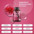 WeightWorld's Probiotika Kapseln für Frauen bieten eine gezielte Kombination aus 6 probiotischen Bakterienstämmen mit insgesamt 30 Milliarden KBE sowie wertvollen pflanzlichen Inhaltsstoffen wie D-Mannose, Cranberry, Hibiskus und Sanddorn.