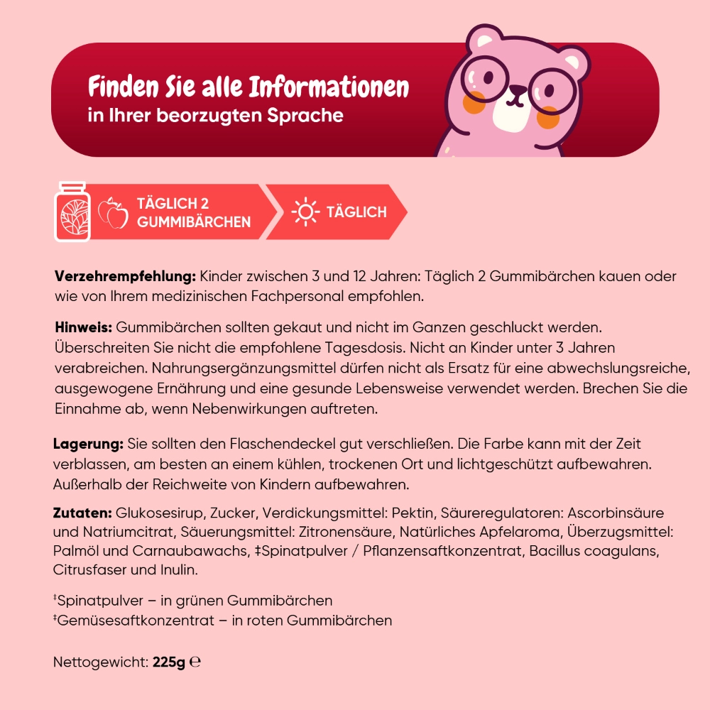 - Kinder, die keine Kapseln mögen: Die weiche Gummibärchen-Form bietet eine angenehme Alternative zu Tabletten oder Pulvern.