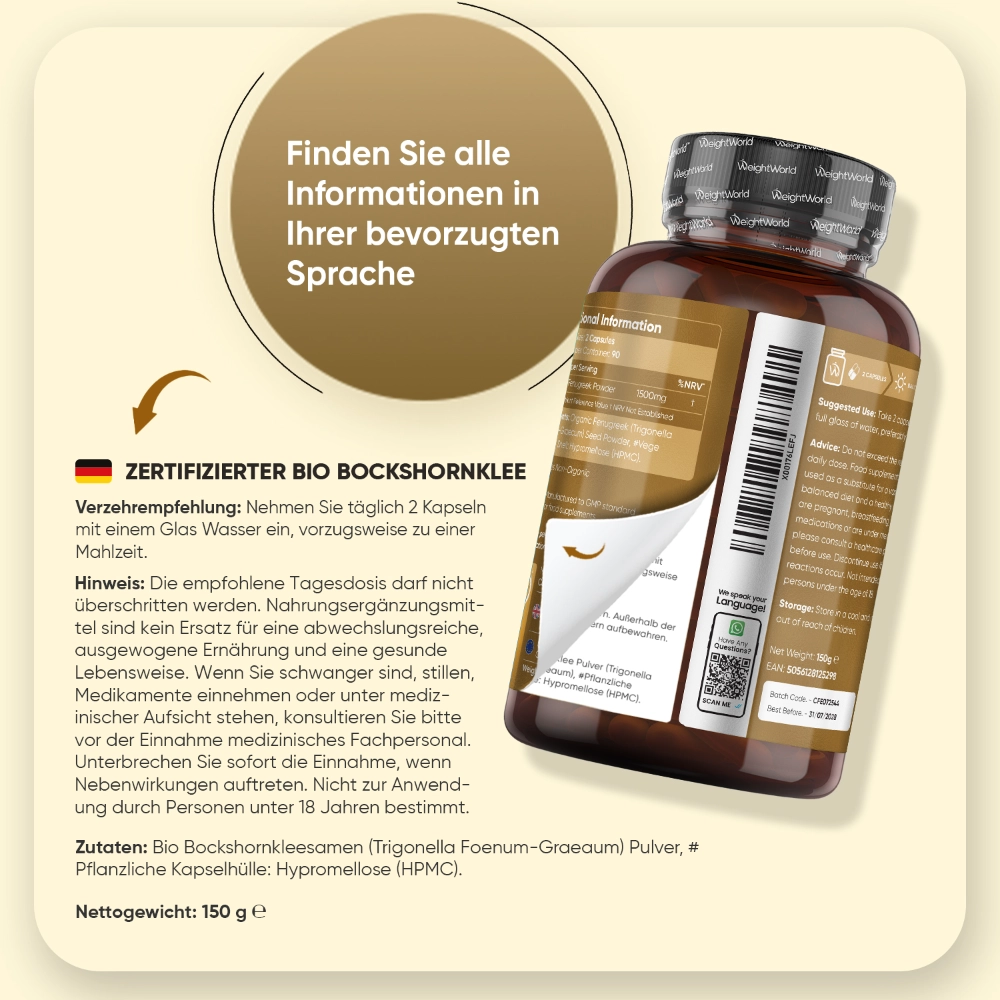 - Hohe Qualität: WeightWorld steht für geprüfte und hochwertige Produkte. Ihre Bio Bockshornklee-Kapseln werden aus sorgfältig ausgewählten Zutaten hergestellt und bieten eine reine und effektive Form von Bockshornklee.