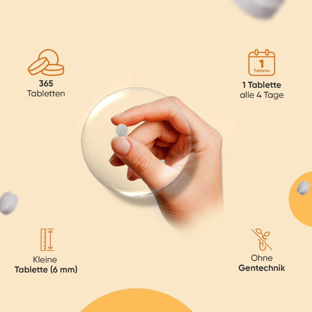 - 356 Tabletten – reicht bei einer Einnahme alle 4 Tage für rund 32 Monate zuverlässige Versorgung.